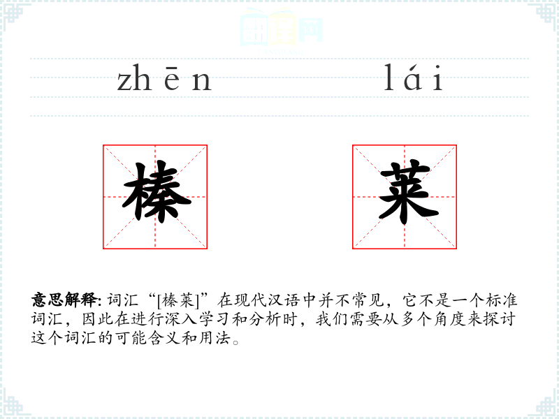 词汇“[榛莱]”在现代汉语中并不常见,它不是一个标准词汇,因此在进行深入学习和分析时,我们需要从多个角度来探讨这个词汇的可能含义和用法。