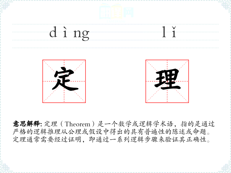"定理"的意思解释、定理是什么意思由翻译网汉语词典查词提供。