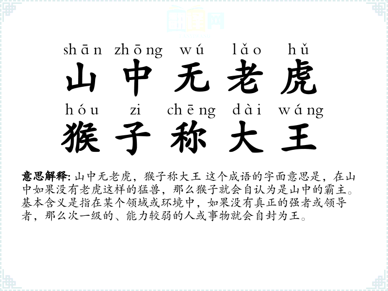 山中无老虎,猴子称大王的分字解释