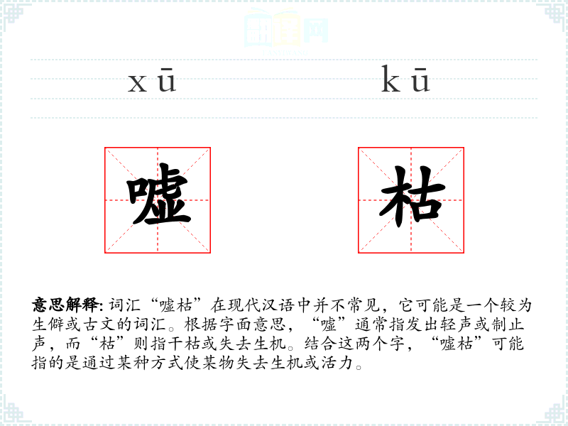 “嘘枯”的字面意思可能是通过发出轻声或某种方式使某物变得干枯或失去活力。