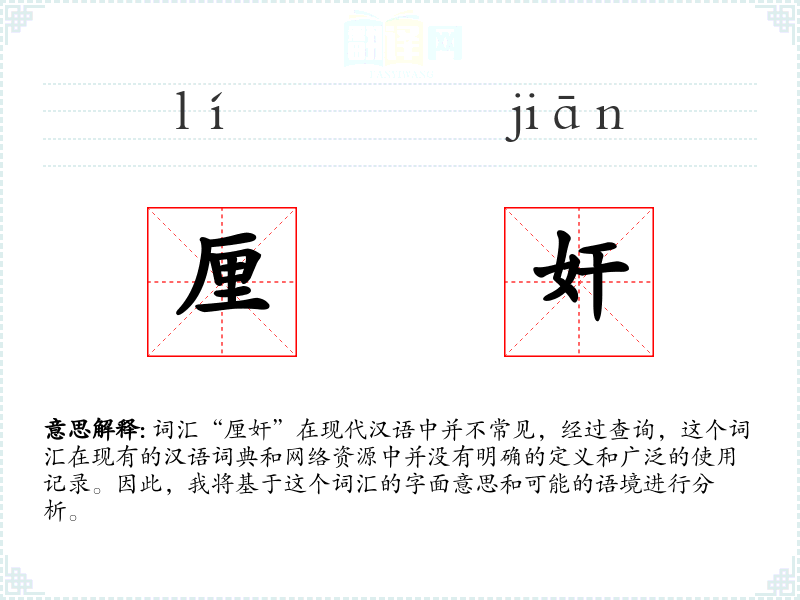 由于“厘奸”不是一个常用词汇,它在不同语言或文化中的对应词汇和使用情况不详。