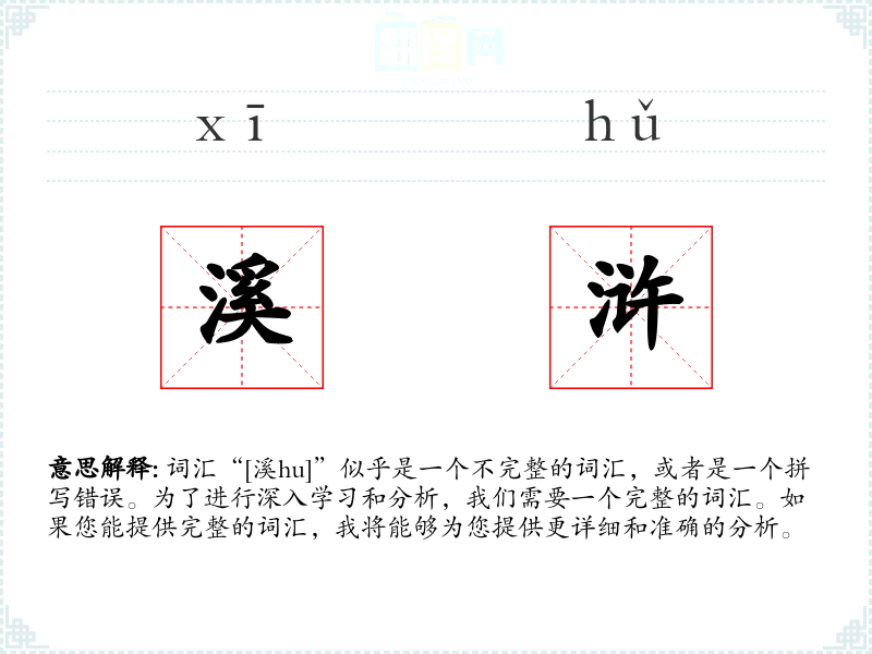 如果您能提供完整的词汇“溪hu”,我将能够为您提供更详细的分析。