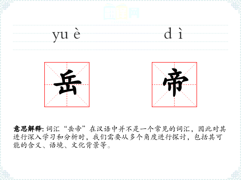 - 反义词:无明显反义词,因为“岳帝”不是一个常用词汇。