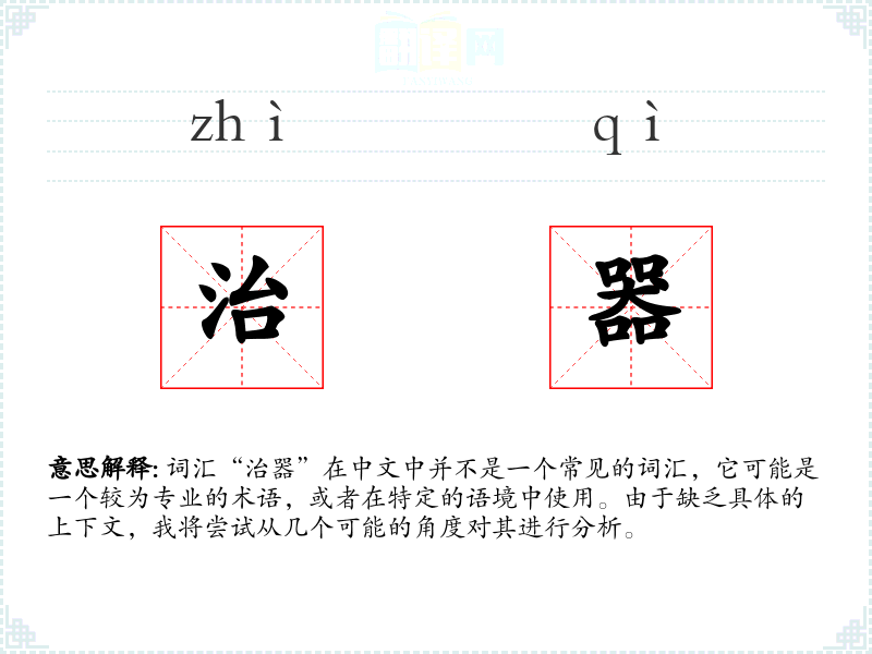 - 反义词:无(由于“治器”不是一个常用词汇,反义词可能不明显)