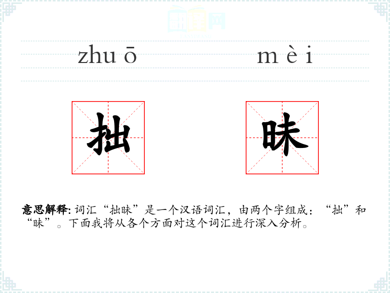 词汇“拙昧”是一个汉语词汇,由两个字组成:“拙”和“昧”。下面我将从各个方面对这个词汇进行深入分析。