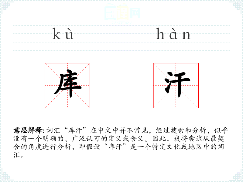 由于“库汗”不是一个广为人知的词汇,我们无法提供一个确切的定义和深入的分析。如果“库汗”是一个特定文化或地区的词汇,那么对该词汇的理解和分析需要在该文化或地区的语境中进行。在语言学习和表达中,了解特定文化或地区的词汇是非常重要的,因为它可以帮助我们更好地理解和尊重不同的文化。
