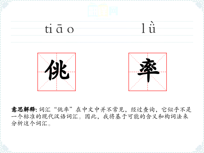 词汇“佻率”在中文中并不常见,经过查询,它似乎不是一个标准的现代汉语词汇。因此,我将基于可能的含义和构词法来分析这个词汇。