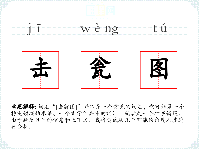 词汇“[击翁图]”并不是一个常见的词汇,它可能是一个特定领域的术语、一个文学作品中的词汇、或者是一个打字错误。由于缺乏具体的信息和上下文,我将尝试从几个可能的角度对其进行分析。