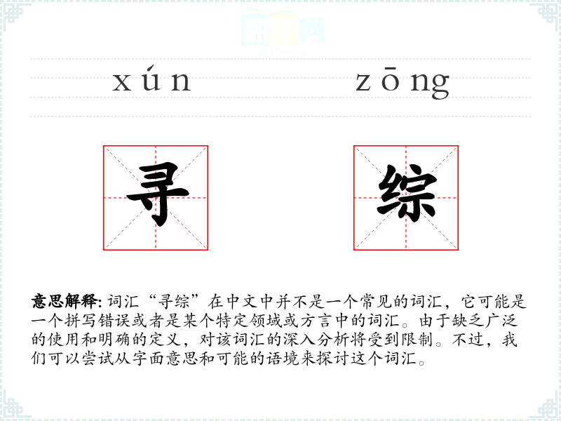“寻综”可能是“寻找”和“综合”两个词的组合。字面上,它可以理解为寻找并综合信息或资源的过程。