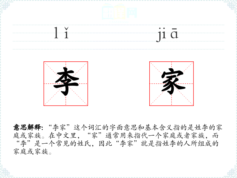 - 反义词:非李家(指不是姓李的家庭)