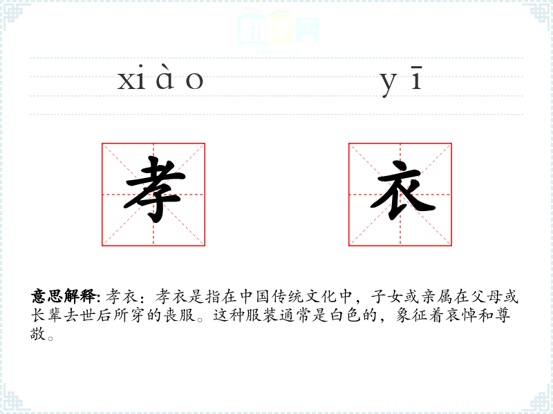 - 孝衣的白色象征着纯洁和对逝者的尊敬。