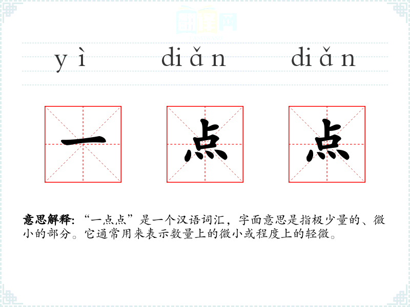 “一点点”是由“一”和“点点”组合而成,其中“点”在古代汉语中已有表示微小、细小的含义。随着时间的推移,“一点点”逐渐成为表示极小数量的常用表达。