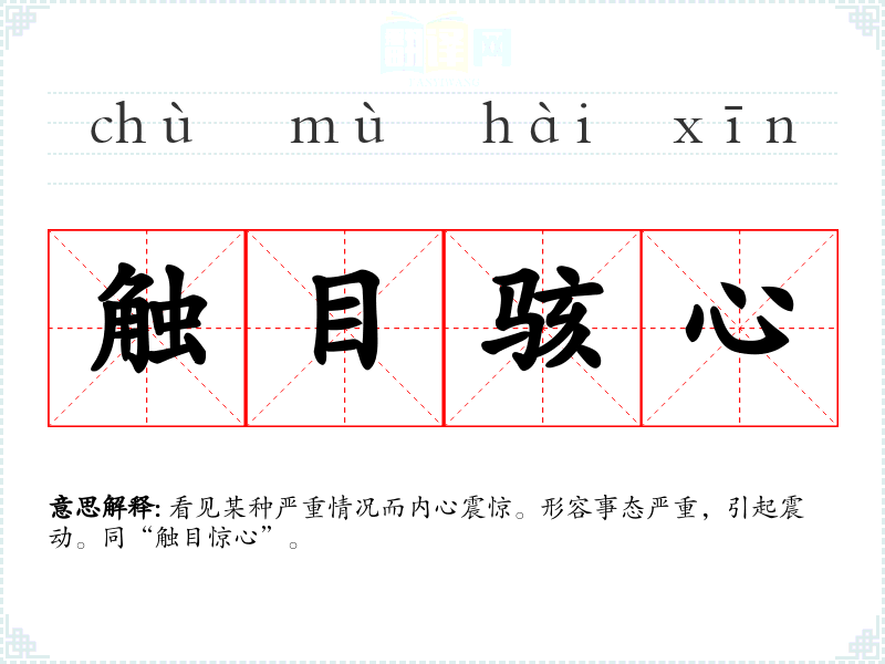 看见某种严重情况而内心震惊。形容事态严重,引起震动。同“