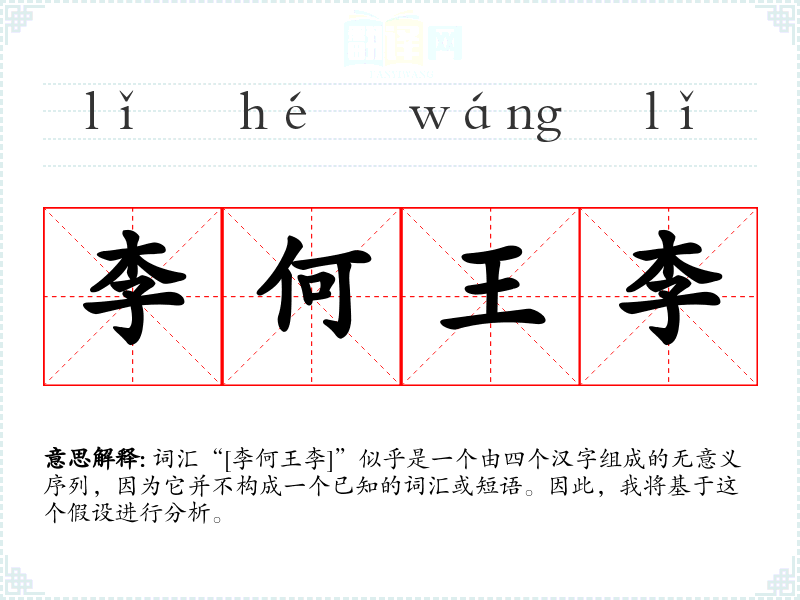 词汇“[李何王李]”似乎是一个由四个汉字组成的无意义序列,因为它并不构成一个已知的词汇或短语。因此,我将基于这个假设进行分析。
