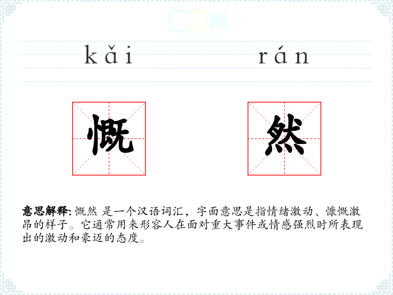 - 专业领域:在历史或军事领域,可能会用“慨然”来形容历史人物在特定历史**中的表现。
