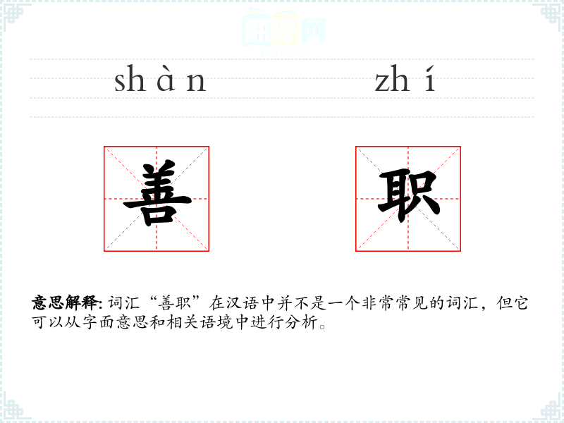 词汇“善职”在汉语中并不是一个非常常见的词汇,但它可以从字面意思和相关语境中进行分析。