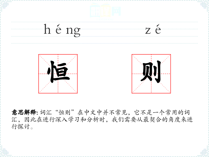 词汇“恒则”在中文中并不常见,它不是一个常用的词汇,因此在进行深入学*和分析时,我们需要从最契合的角度来进行探讨。