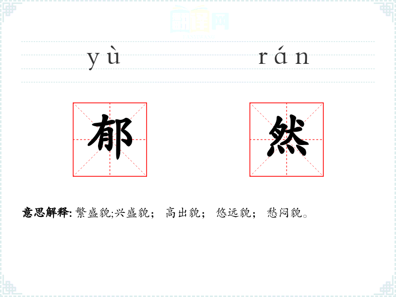 繁盛貌;兴盛貌; 高出貌; 悠远貌; 愁闷貌。