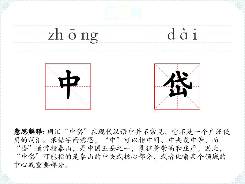 - 词源:“中”和“岱”都是古代汉语词汇,具有悠久的历史。