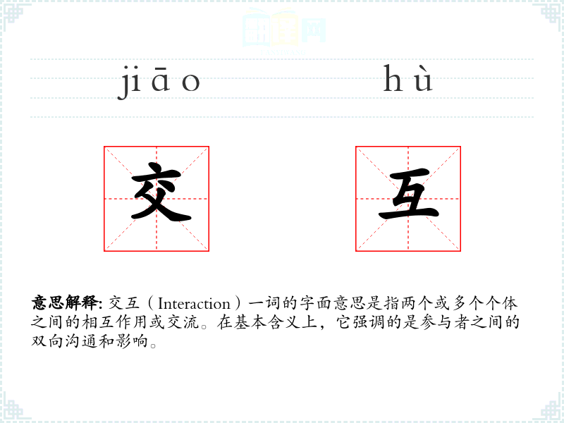 在不同语言中,如英语中的“Interaction”和中文中的“交互”,虽然表达方式不同,但核心概念相似,都强调了双向的沟通和作用。