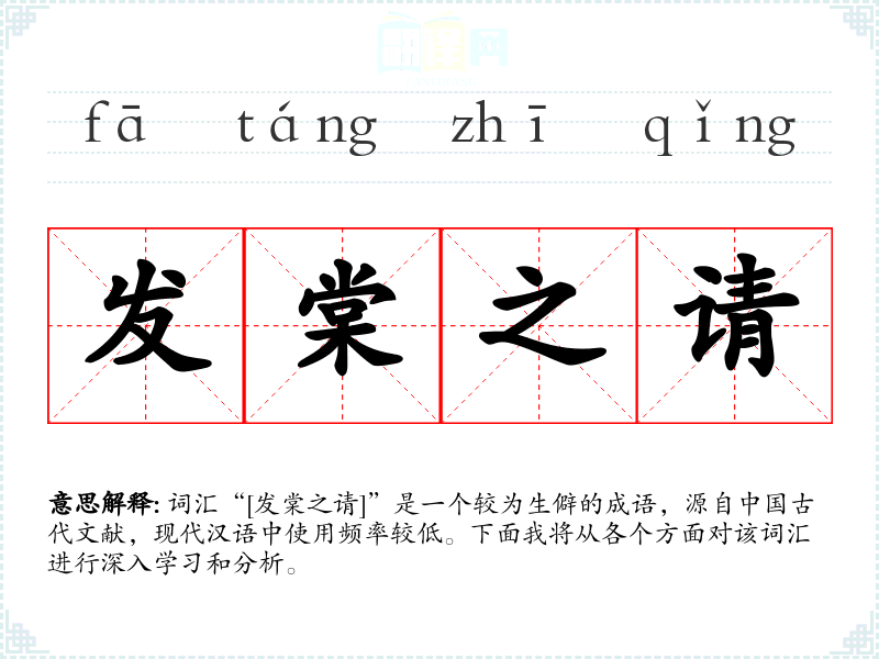 词汇“[发棠之请]”是一个较为生僻的成语,源自*古代文献,现代汉语中使用频率较低。下面我将从各个方面对该词汇进行深入学和分析。