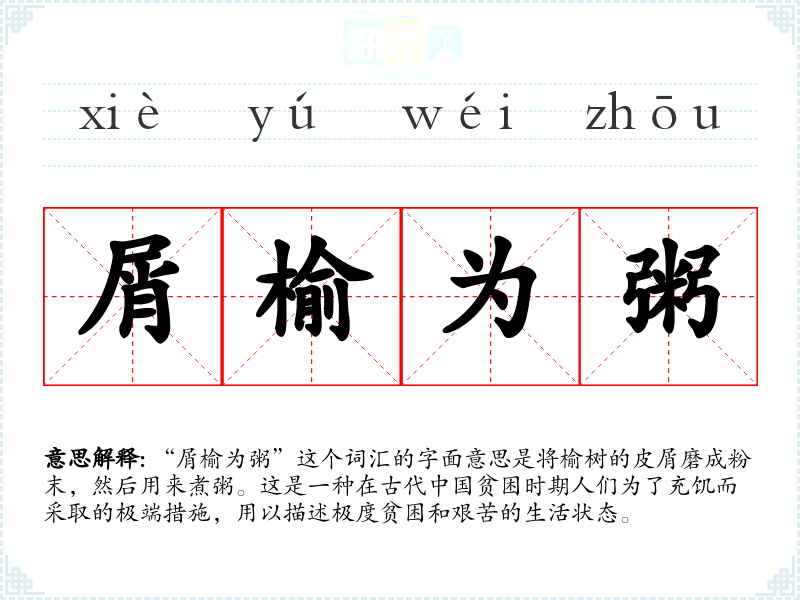 在文学作品中,“屑榆为粥”常被用来描绘战乱、饥荒或社会动荡时期的悲惨景象,如杜甫的诗中就有类似的描述。在口语中,这个词汇可能不太常用,但在历史或社会学的专业讨论中,它可能会被提及,用以说明特定历史时期的民生状况。
