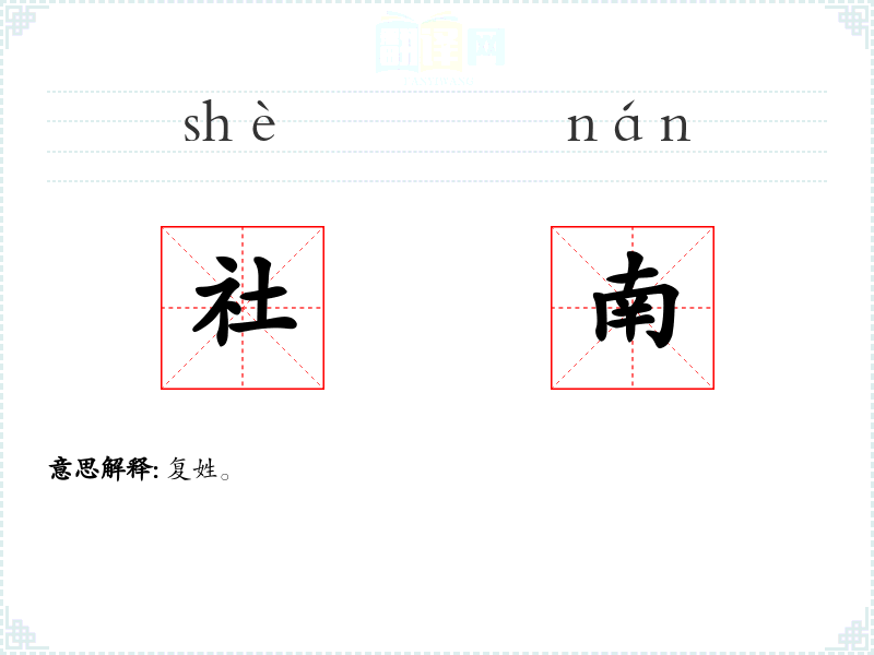 社南的分字解释