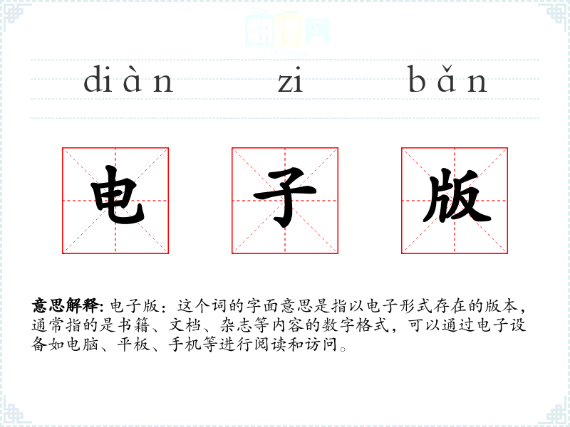 同义词:数字版、在线版、电子格式 反义词:纸质版、实体版、印刷版