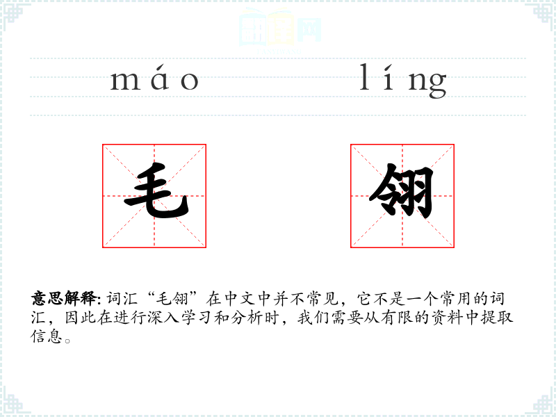 词汇“毛翎”在中文中并不常见,它不是一个常用的词汇,因此在进行深入学*和分析时,我们需要从有限的资料中提取信息。