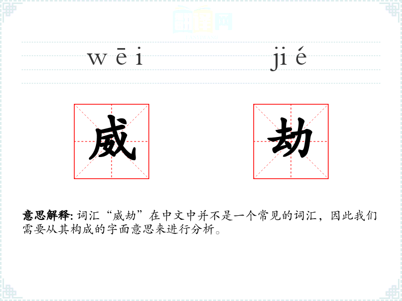 词汇“威劫”在中文中并不是一个常见的词汇,因此我们需要从其构成的字面意思来进行分析。