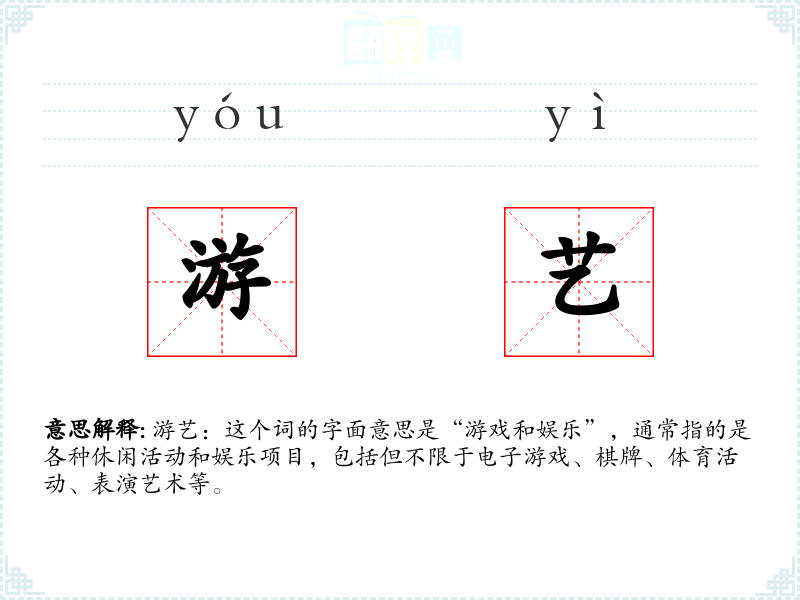 "游艺"的意思解释、游艺是什么意思由翻译网汉语词典查词提供。