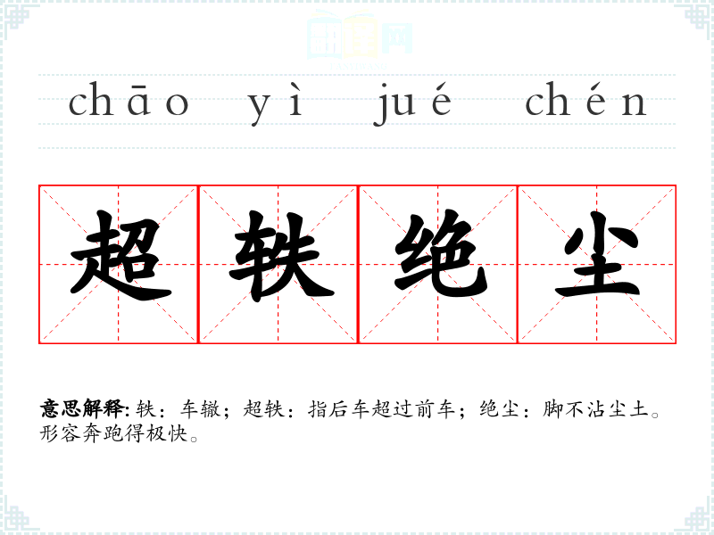 轶:车辙;超轶:指后车超过前车;绝尘:脚不沾尘土。形容奔跑得极快。