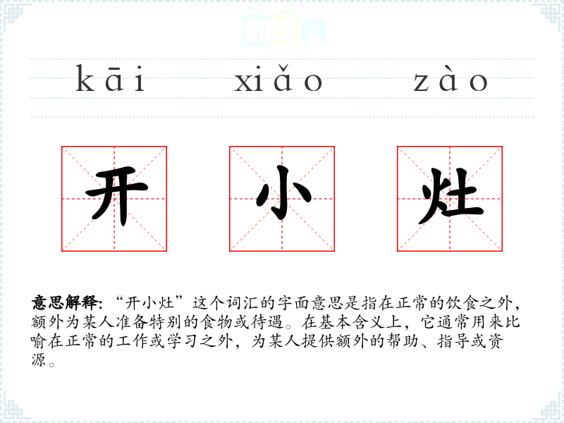 - 专业领域:在教育领域,教师可能会为某个学生“开小灶”,提供额外的辅导或资源,以帮助其更好地学*。