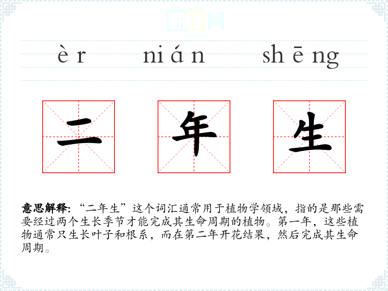 “二年生”这个词汇通常用于植物学领域,指的是那些需要经过两个生长季节才能完成其生命周期的植物。第一年,这些植物通常只生长叶子和根系,而在第二年开花结果,然后完成其生命周期。