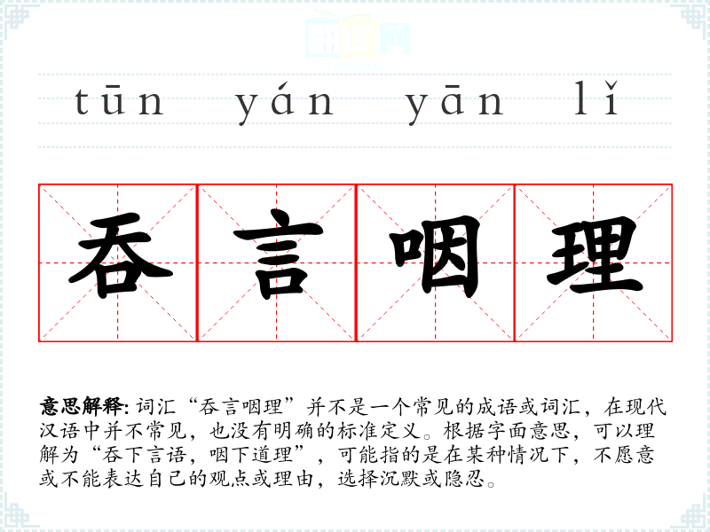 由于“吞言咽理”不是一个标准词汇,我们只能根据字面意思进行解释: