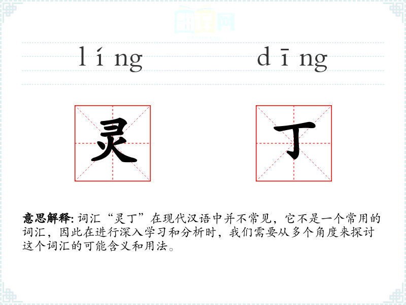 “灵丁”这个词汇在现代汉语中并不常见,它的含义和用法需要根据具体的语境和文化背景来理解。在学这个词汇时,我们可以通过创造性的想象和文学作品中的应用来探索其可能的含义和用法。在语言学和表达中,了解和掌握这样的词汇可以帮助我们更好地理解和欣赏文学作品中的创造性和多样性。