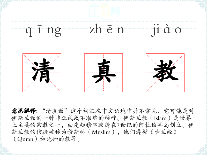 - 反义词:无(因为“清真教”并不是一个正式的**术语)