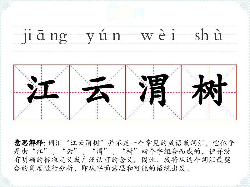 - 字面意思:江(river)、云(cloud)、渭(a specific river in ancient China, now part of Shaanxi province)、树(tree)。