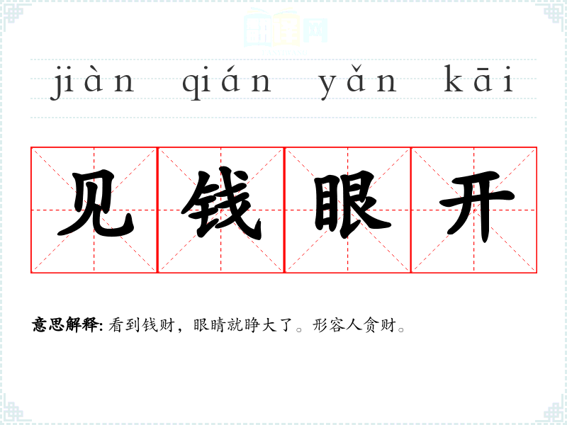 见钱眼开的分字解释