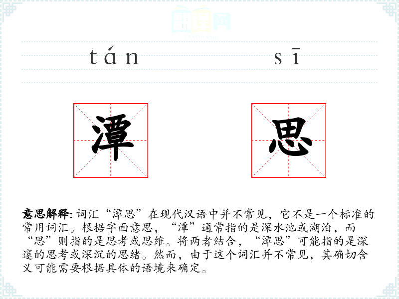 由于“潭思”不是一个常用词汇,它在不同语言或文化中的对应词汇及其使用情况不太清楚。