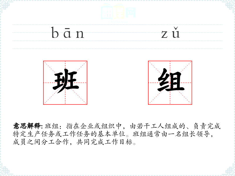 "班组"的意思解释、班组是什么意思由翻译网汉语词典查词提供。