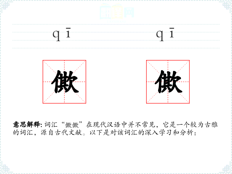 词汇“僛僛”在现代汉语中并不常见,它是一个较为古雅的词汇,源自古代文献。以下是对该词汇的深入学习和分析:
