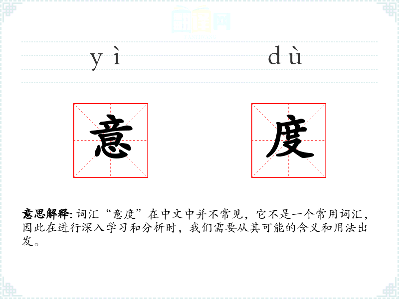 词汇“意度”在中文中并不常见,它不是一个常用词汇,因此在进行深入学习和分析时,我们需要从其可能的含义和用法出发。