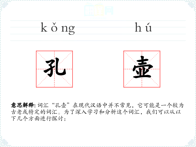 词汇“孔壶”在现代汉语中并不常见,它可能是一个较为古老或特定的词汇。为了深入学*和分析这个词汇,我们可以从以下几个方面进行探讨: