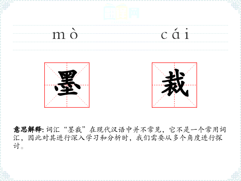 词汇“墨裁”在现代汉语中并不常见,它不是一个常用词汇,因此对其进行深入学*和分析时,我们需要从多个角度进行探讨。