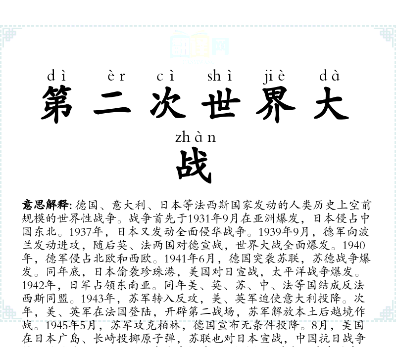"第二次世界大战"的意思解释、第二次世界大战是什么意思由翻译网汉语词典查词提供。