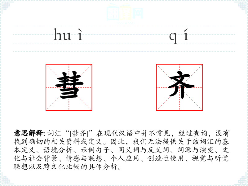 - 如果“彗齐”在特定文化或社会背景中有特殊含义,我们无法进行分析。