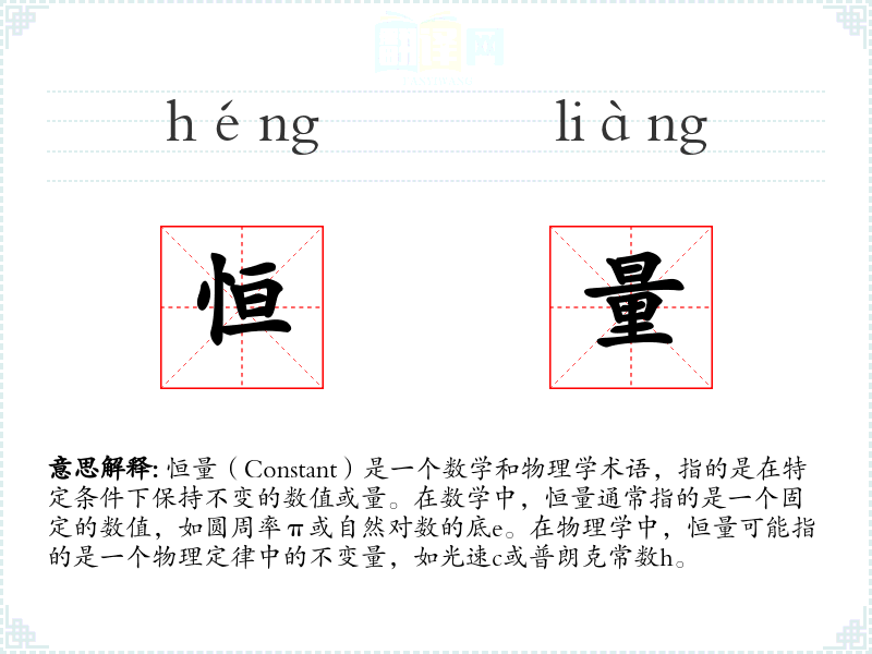 - 反义词:变量(与恒量相对,指的是可以变化的量)