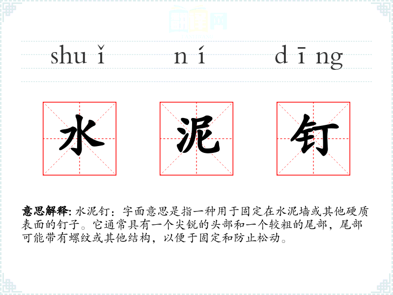 "水泥钉"的意思解释、水泥钉是什么意思由翻译网汉语词典查词提供。