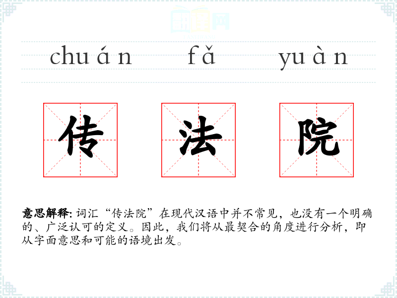 词汇“传法院”在现代汉语中并不常见,也没有一个明确的、广泛认可的定义。因此,我们将从最契合的角度进行分析,即从字面意思和可能的语境出发。